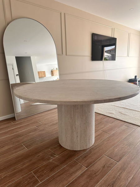 Table en travertin et pied lisse.
